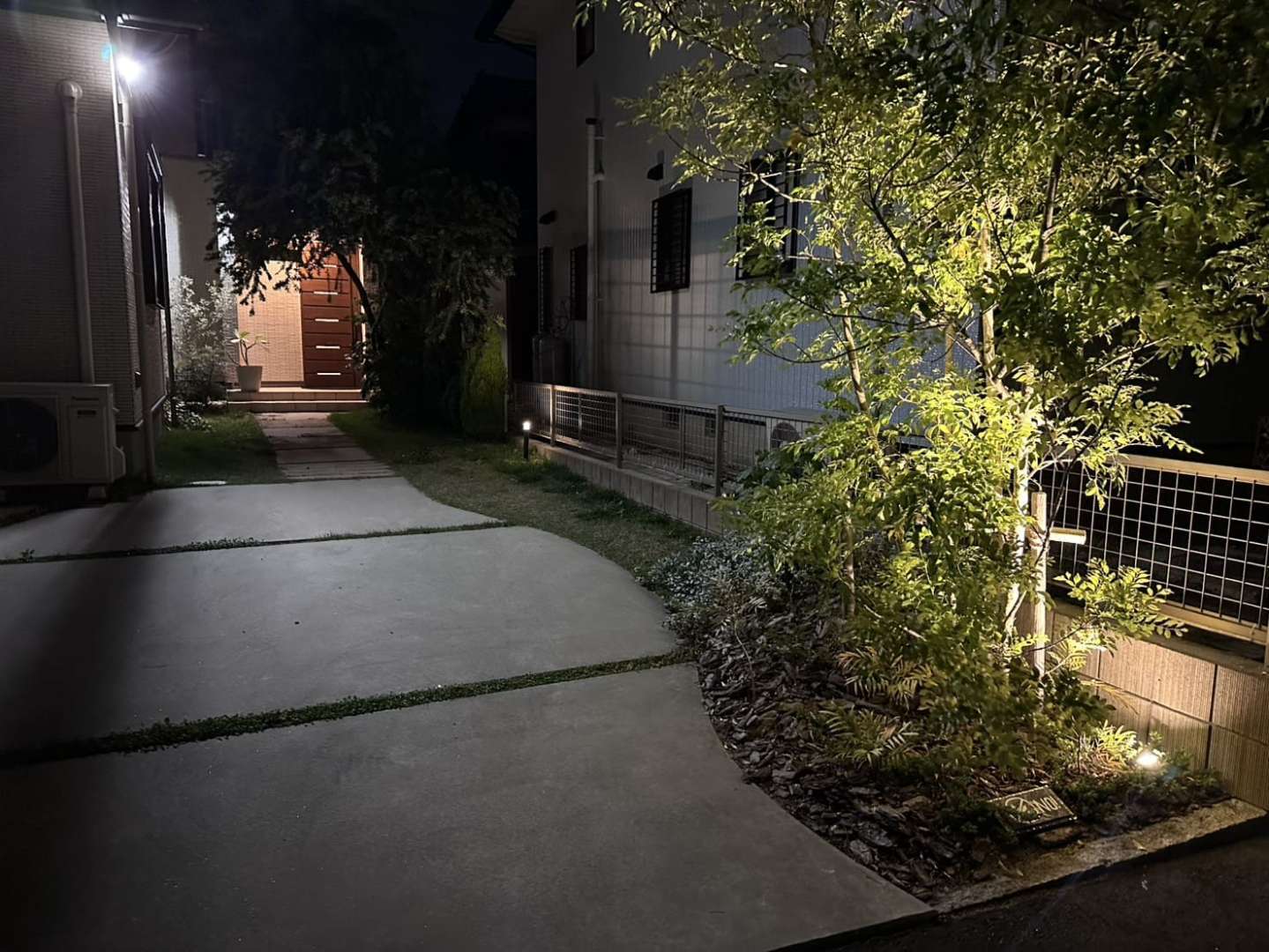 「夜の帰宅が楽しみになる外構にしていただきました。照明の当たり方ひとつで、こんなにも雰囲気が変わるとは驚きです。見た目も機能も理想通りです。」